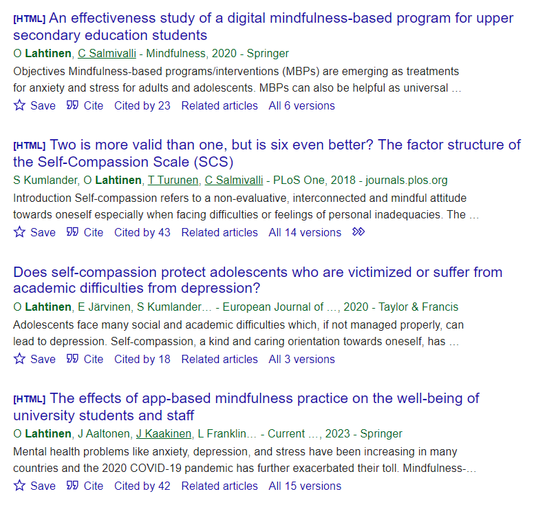 This brings us to the next big lesson in reading scientific articles: look into the authors who wrote it. In particular, see where their expertise is, how many other studies they’ve published, and with whom. A quick Google reveals that Oskari Lahtinen is an ice hockey player…okay, maybe it’s not that Oskari Lahtinen. Clicking on the author’s name in the article’s webpage shows that he’s only written one article for a journal under the Wiley Online Library: this article. Uh oh. Punching his name into Google Scholar shows us some of his other work, with titles like “An effectiveness study of a digital mindfulness-based program for upper secondary education students” and “Does self-compassion protect adolescents who are victimized or suffer from academic difficulties from depression?”