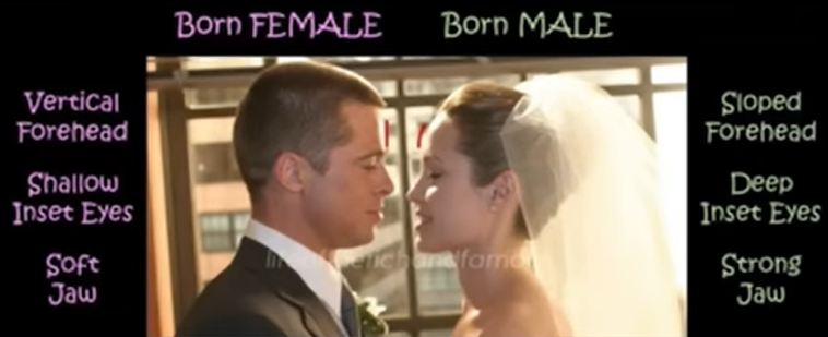 The main form of transvestigator content involves a picture of a celebrity—usually at unflattering angles—overlaid with straight lines, triangles, and skeletal diagrams meant to “prove” that someone has either a male skull/bone structure or a female skull/bone structure. They point to features such as the jawline, hips, brow ridge, and nose to determine, conclusively, that a person was assigned male or female at birth. (Yes, these people are insane and need help.)