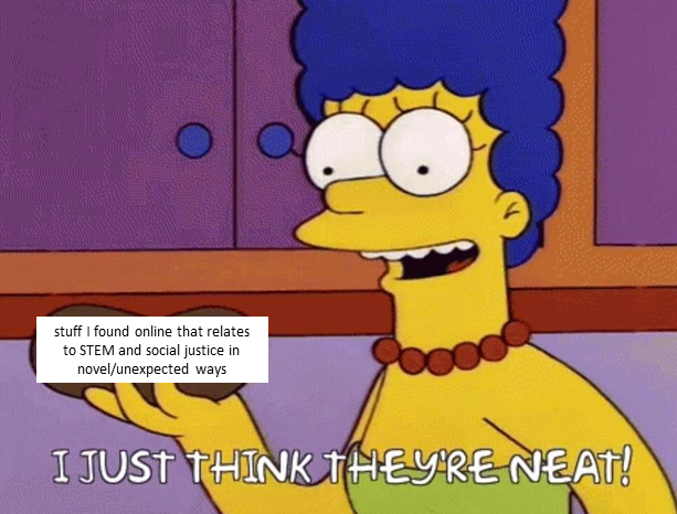 [Image Description: Marge Simpson “I just think they’re neat” meme where the potato is labeled “stuff I found online that relates to STEM and social justice in novel/unexpected ways”.]