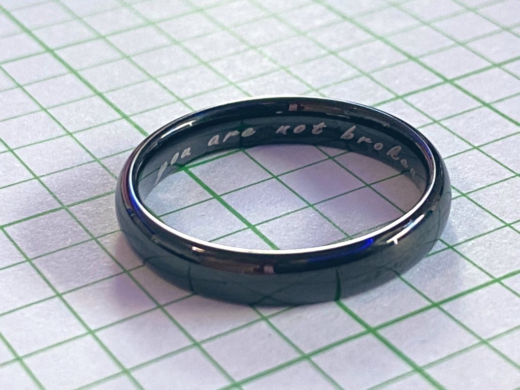 For most of my life, I genuinely thought I was broken, that there was something wrong with me because I had a non-normative sexuality. Even after starting my transition, I spent a year feeling lost around other queer people, never knowing quite how to articulate my lack of sexual desire. When I discovered the word “demisexual”, it was even more liberating than realizing my true gender. Nowadays, I wear a tungsten ring inscribed with the words “you are not broken” as a reminder to myself that I should never have to fit into an arbitrary standard.